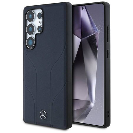 Case SAMSUNG GALAXY S25 ULTRA Mercedes AMG Hardcase Leather Debossed Lines MagSafe navy blue