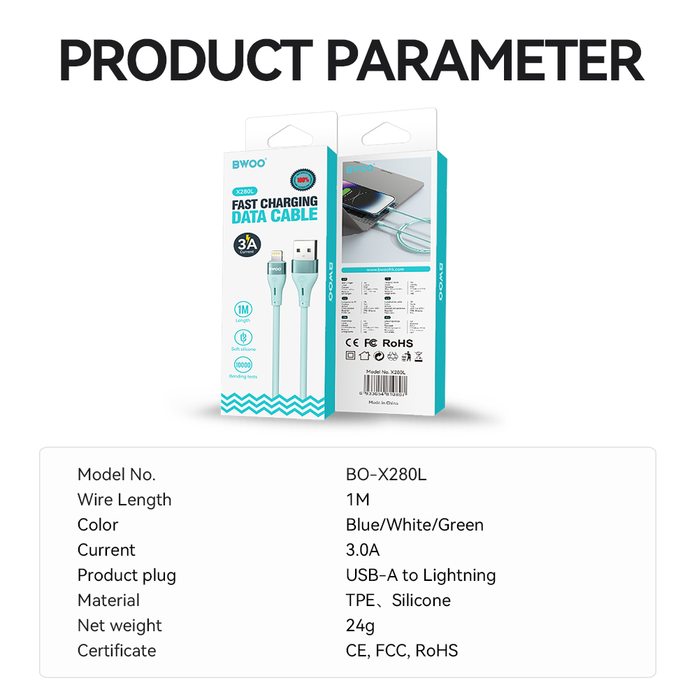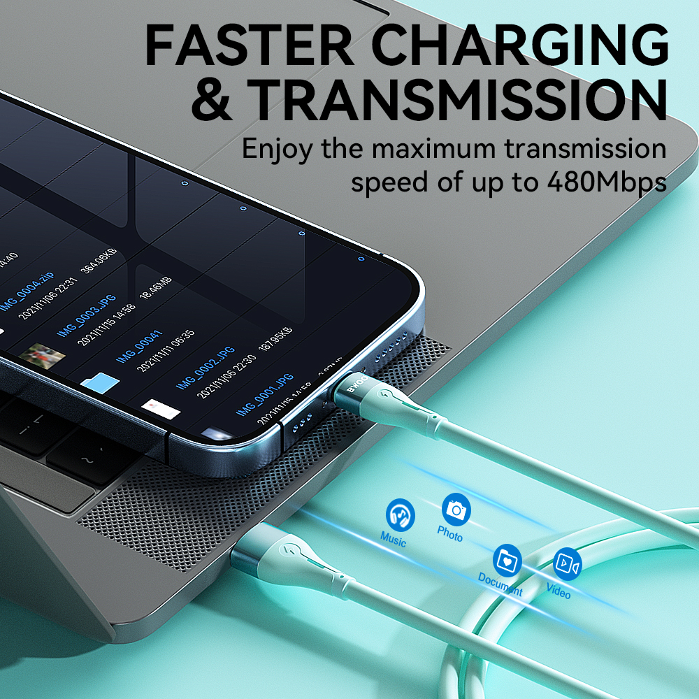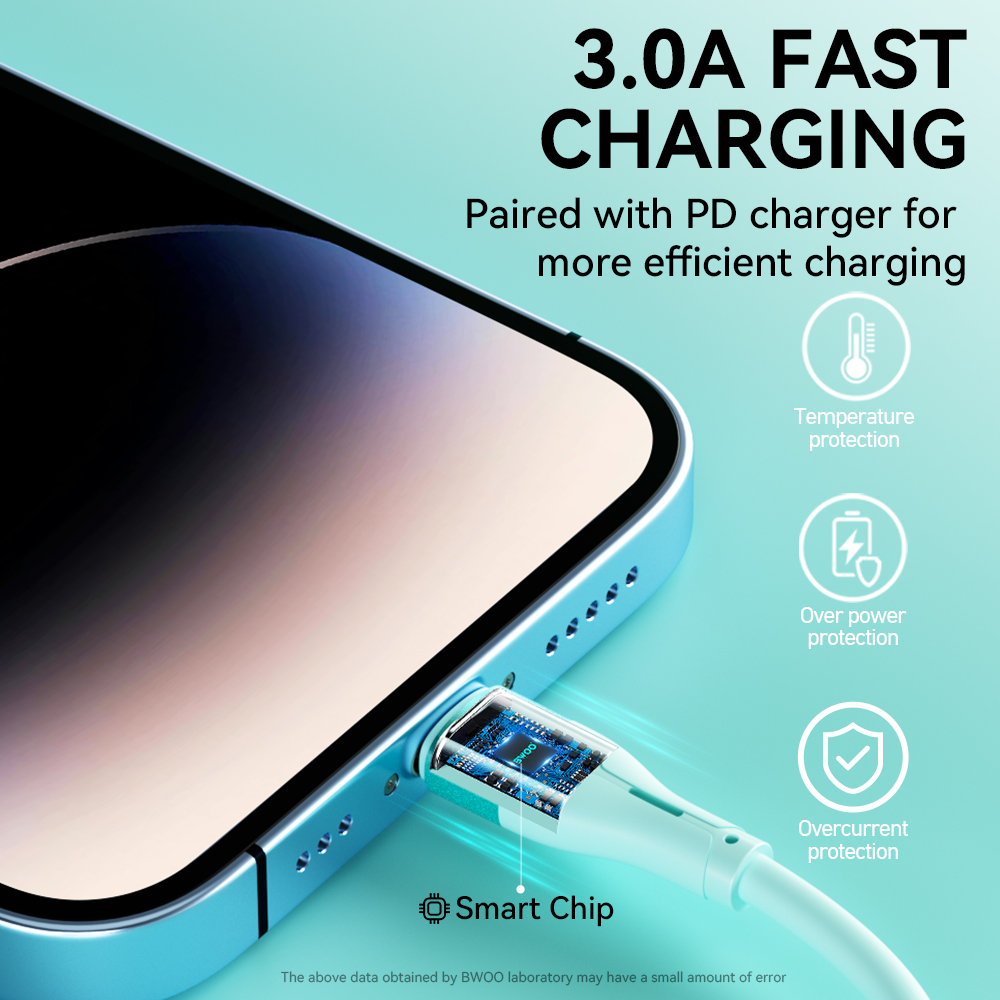 Ten kabel danych USB-A do Lightning obsługuje maksymalny prąd wyjściowy 3A, umożliwiając szybkie ładowanie wszystkich urządzeń z portem Lightning. Oferuje również szybki transfer danych z maksymalną prędkością przesyłu danych do 480 Mb/s podczas ładowania.