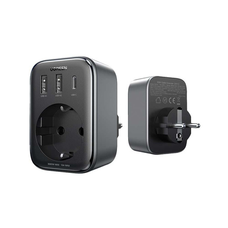 Ładowarka sieciowa 30W (2xUSB/USB C/AC) / adapter EU - EU 13A Ugreen CD314 - czarna