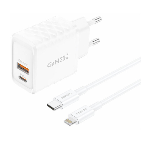 Ładowarka sieciowa Foneng EU56 1xUSB-A, 1xUSB-C, 20W (Biała) + kabel USB-A do Lightning