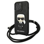Oryginalne Etui IPHONE 13 PRO Karl Lagerfeld Hardcase Leather Monogram Patch And Cord Iconik (KLHCP13LCMNIPK) czarne